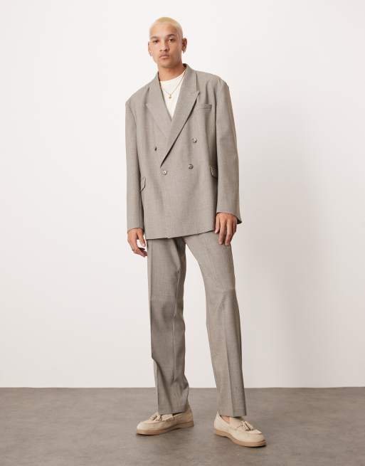 Chaqueta de traje gris melange de corte suelto extragrande con doble botonadura de tejido texturizado de ASOS DESIGN