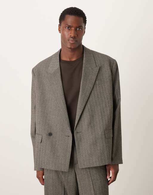 Chaqueta de traje gris ultragrande con patrón de espiga de ASOS DESIGN
