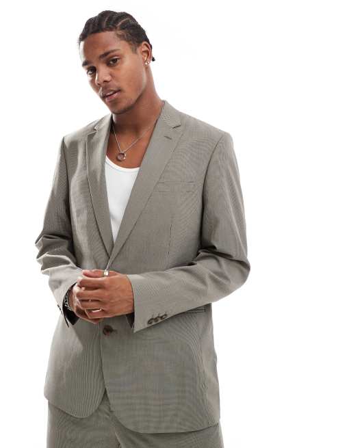 Chaqueta de traje marrón de corte estándar con estampado de pata de gallo de ASOS DESIGN