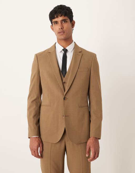 Chaqueta de traje marrón de corte slim de ASOS DESIGN