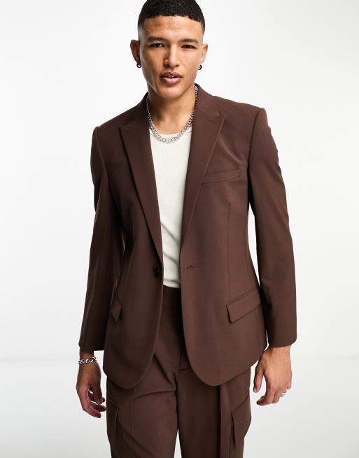 Chaqueta de traje marrón oscuro entallada de ASOS DESIGN