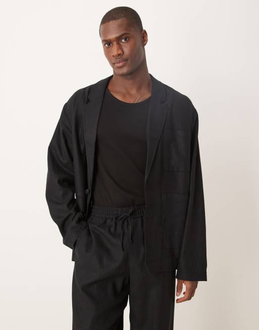 Chaqueta de traje negra holgada sin forro de sarga de ASOS DESIGN