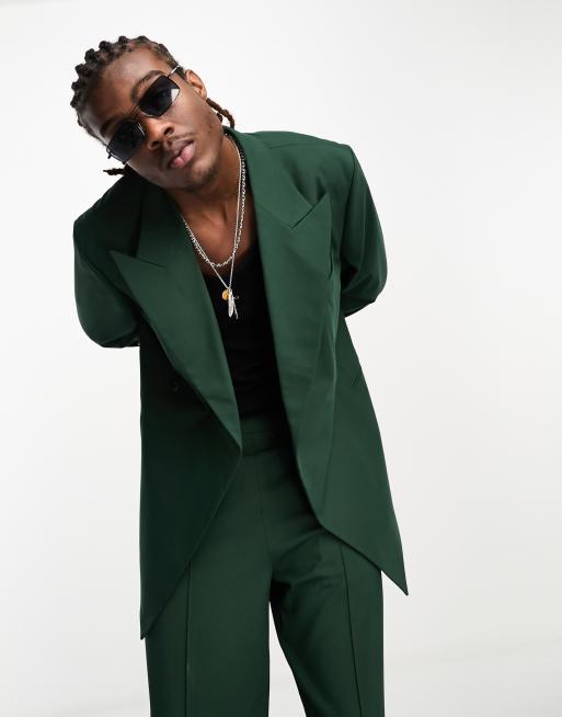 Chaqueta de traje verde oscuro cruzada de corte slim de ASOS DESIGN