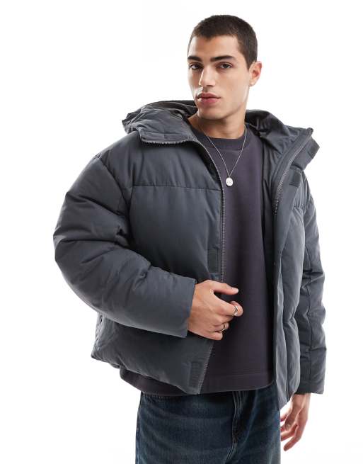 Chaqueta gris acolchada extragrande con detalle de costuras de ASOS DESIGN