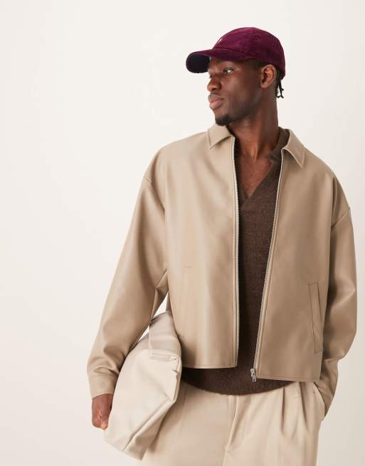 Chaqueta Harrington corta beis de cuero sintético de ASOS DESIGN