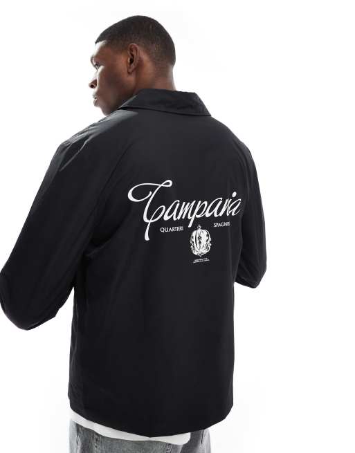 Chaqueta Harrington negra ligera con diseño universitario y estampado en la espalda de ASOS DESIGN