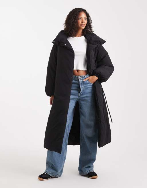 Chaqueta larga negra acolchada con cuello alzado de ASOS DESIGN