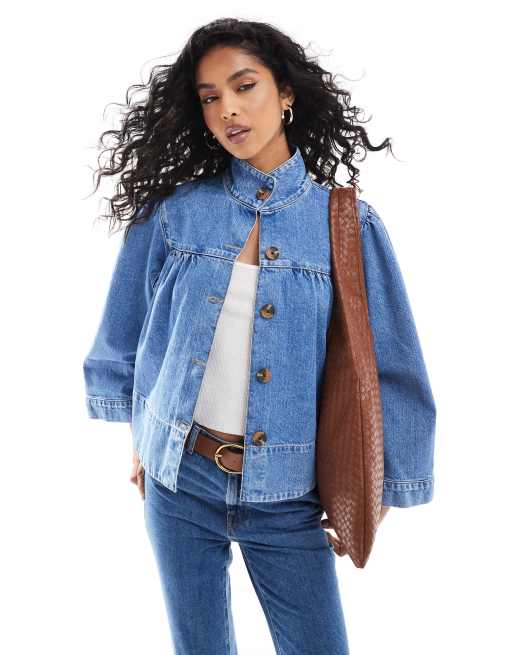 Chaqueta vaquera azul medio con mangas abullonadas de ASOS DESIGN