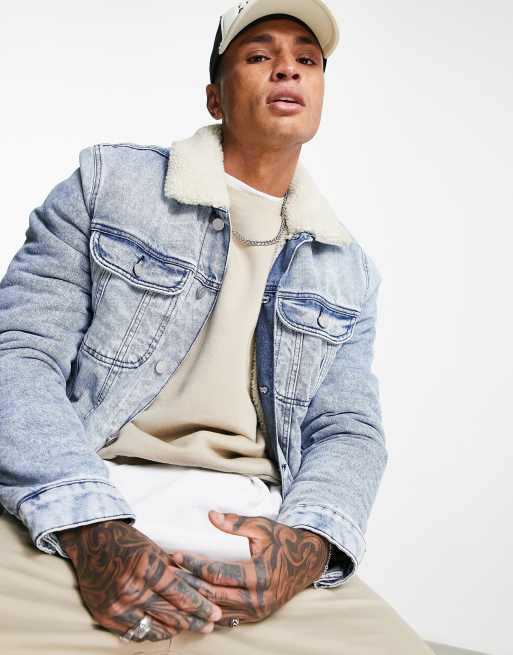 Chaqueta vaquera con lavado medio y forro de borreguito de ASOS DESIGN