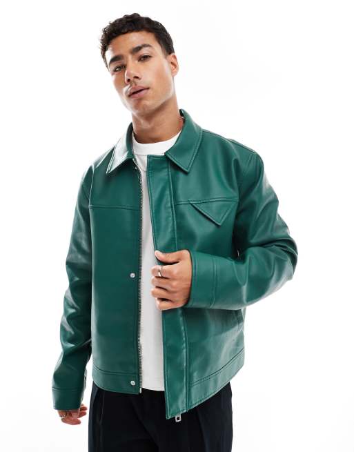 Chaqueta verde oscuro de cuero sintético de ASOS DESIGN