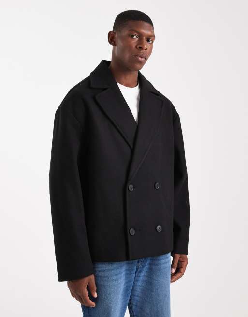 Chaquetón negro de tejido efecto lana de ASOS DESIGN