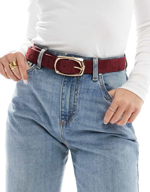 Cinturón burdeos para cadera y cintura de ante con hebilla lisa de ASOS DESIGN