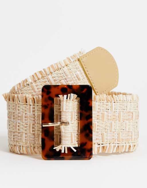 Cinturón de paha con hebilla efecto carey ancho de ASOS DESIGN