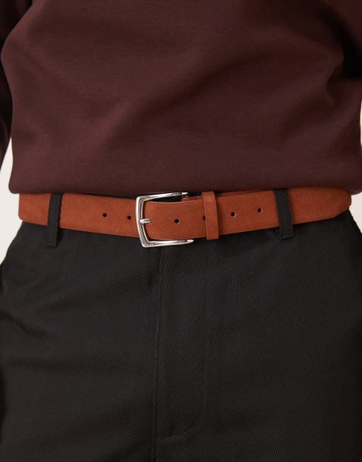 Cinturón de vestir marrón de ante con hebilla plateada de ASOS DESIGN