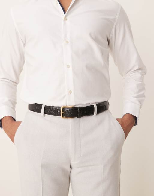 Cinturón de vestir negro efecto piel de caimán de cuero sintético de ASOS DESIGN
