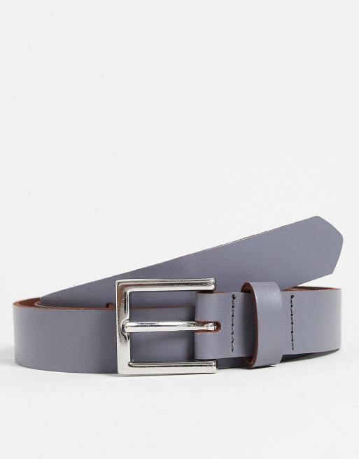 Cinturón gris carbón estrecho de cuero de ASOS DESIGN