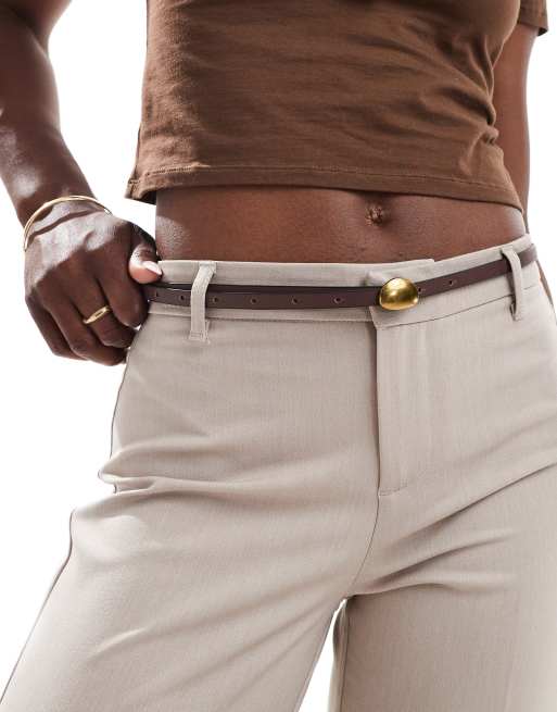 Cinturón marrón chocolate para cadera y cintura con hebilla con diseño abombado abstracto de ASOS DESIGN