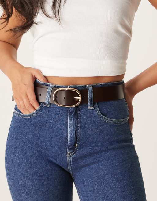 Cinturón marrón chocolate para cadera y cintura de cuero con hebilla tubular fina de ASOS DESIGN