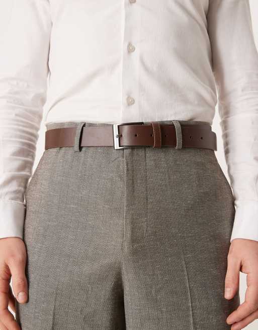 Cinturón marrón de cuero sintético con hebilla gris plomo de ASOS DESIGN