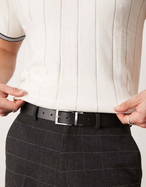 Cinturón marrón y negro reversible de cuero sintético con hebilla plateada de ASOS DESIGN