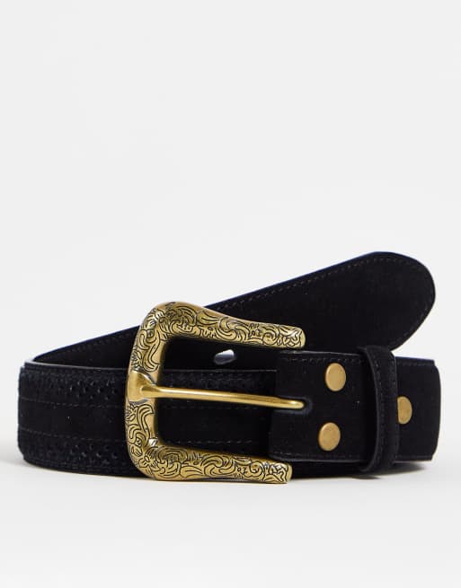 Cinturón negro de ante con hebilla de estilo wéstern de ASOS DESIGN