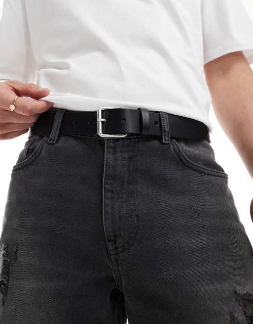 Cinturón negro de cuero con hebilla giratoria plateada pulida de ASOS DESIGN