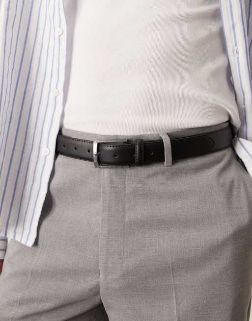 Cinturón negro de cuero sintético con hebilla gris plomo de ASOS DESIGN
