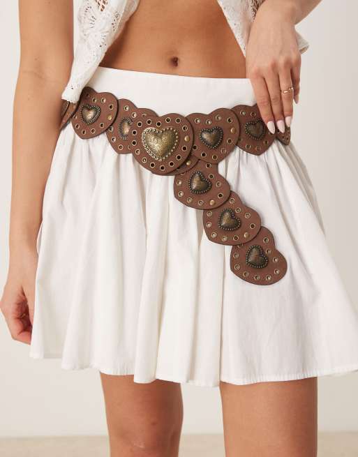 Cinturón para cintura y cadera marrón con detalle de discos en forma de corazones y tachuelas de antelina de ASOS DESIGN
