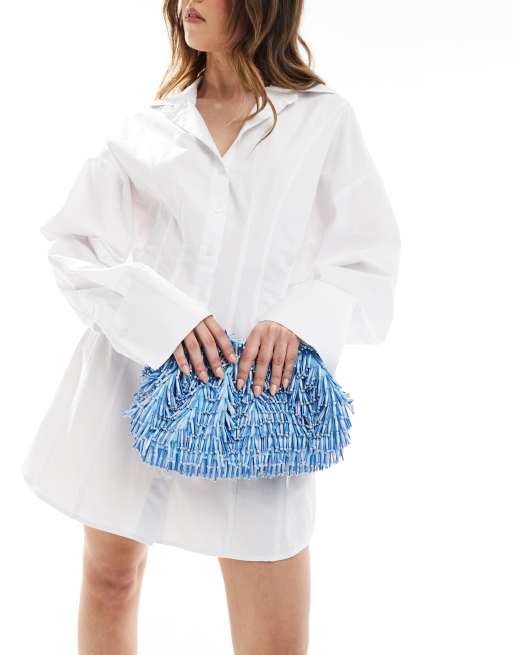 Clutch azul estructurado con flecos de ASOS DESIGN