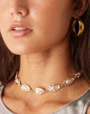 Collar corto dorado con diseño con perlas de imitación de ASOS DESIGN
