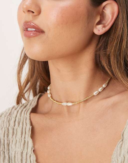 Collar corto dorado pulido con detalles de cuentas y perlas de imitación de ASOS DESIGN