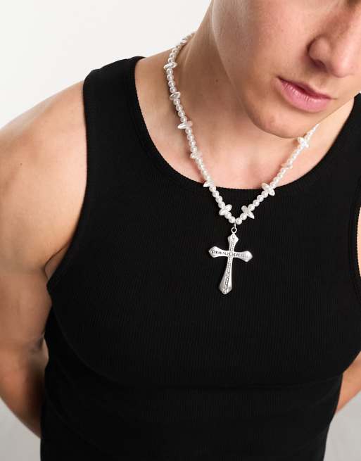 Collar de cuentas con colgante de cruz grande y perlas de imitación de ASOS DESIGN