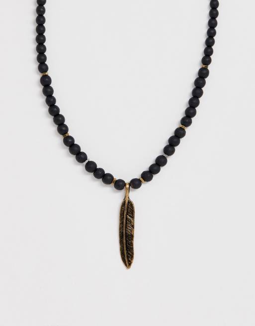Collar de cuentas en negro con pluma de ASOS DESIGN