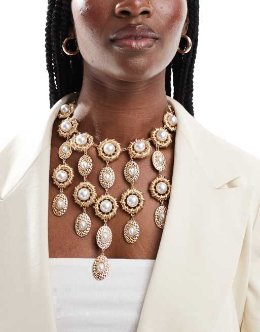 Collar dorado con diseño efecto cascada de perlas sintéticas de ASOS DESIGN