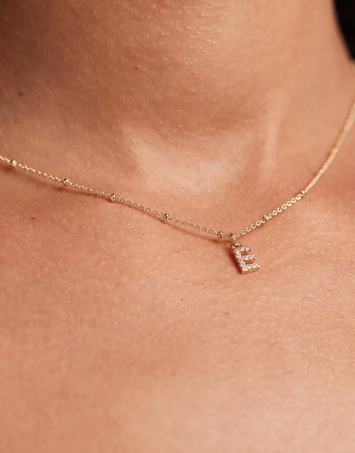 Collar dorado de cadena con esfera, colgante de letra E con circonitas y bolsa de regalo de ASOS DESIGN