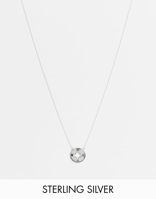 Collar en plata de ley con colgante en forma de brújula de ASOS DESIGN