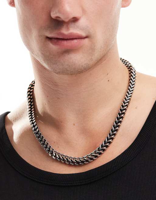 Collar gris plomo de cadena plana de acero inoxidable resistente al agua de ASOS DESIGN
