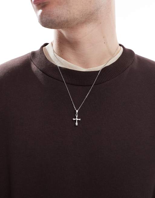 Collar plateado con colgante de cruz de ASOS DESIGN