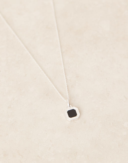 Collar plateado con colgante octogonal de piedra semipreciosa ónice de plata de ley de ASOS DESIGN