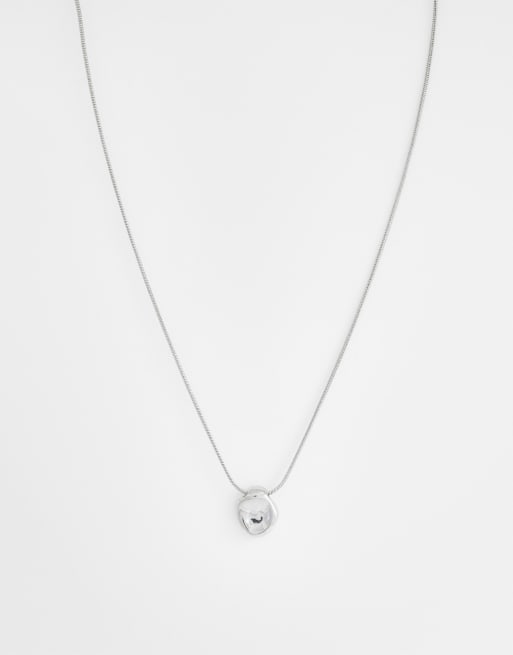 Collar plateado con colgante redondo efecto fundido de acero inoxidable resistente al agua de ASOS DESIGN