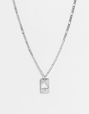 Collar plateado de cadena fígaro de 3 mm con colgante de as de picas de ASOS DESIGN