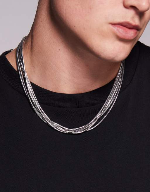 Collar plateado para festivales de varias hileras de cadena de serpiente de ASOS DESIGN