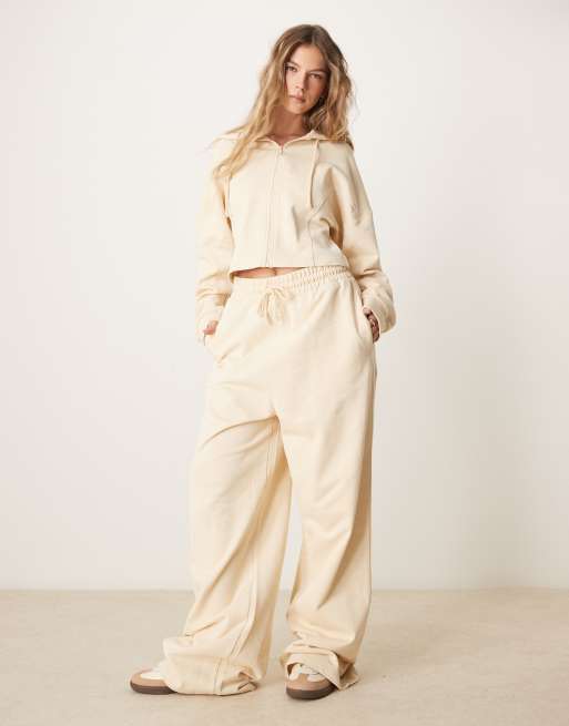 Conjunto amarillo crema de joggers y sudadera con capucha, cremallera y detalle de costuras de ASOS DESIGN