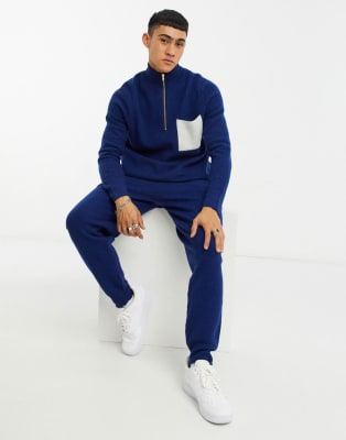 Conjunto azul marino de punto con bolsillos de parche de lana cocida de ASOS DESIGN