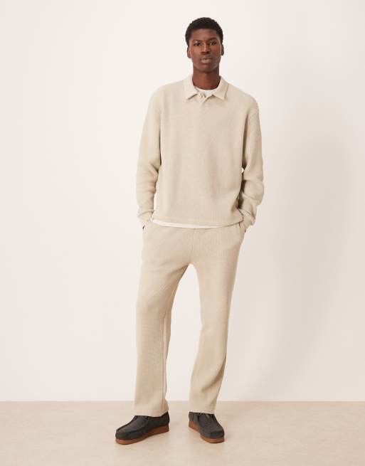 Conjunto beis de joggers y sudadera holgada con cuello de solapas de tejido texturizado de ASOS DESIGN