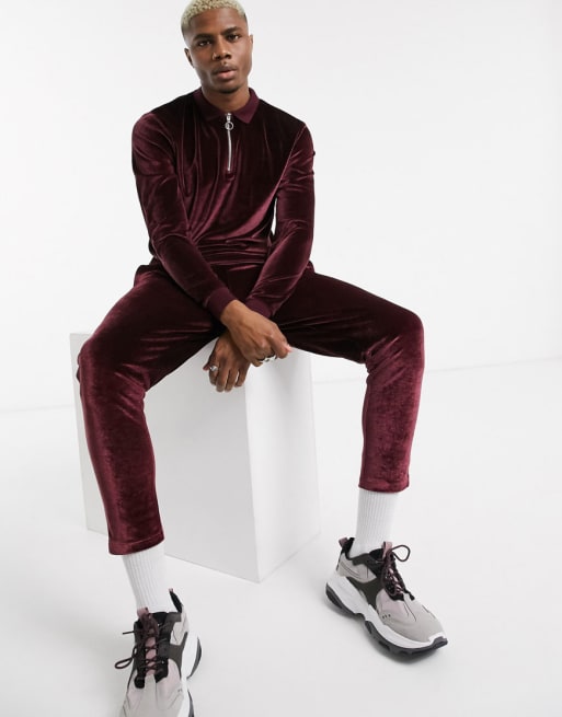 Conjunto burdeos en tejido de velour de ASOS DESIGN