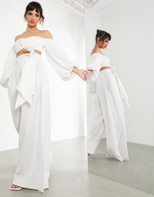 Conjunto color marfil de top corto y pantalones de pernera ancha de ASOS EDITION