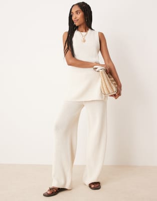 Conjunto color piedra de pantalones de pernera ancha y top largo de tirantes de punto liso grueso de ASOS DESIGN