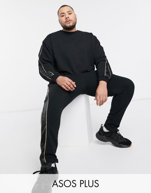 Conjunto con paneles de satén y ribetes en dorado de ASOS DESIGN Plus