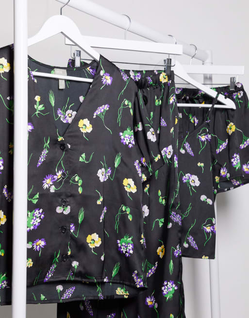 Conjunto de camisa de manga corta y pantalones cortos de satén con estampado de flores silvestres mix & match de ASOS DESIGN